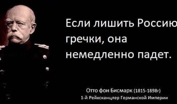 «Прежде в России случались соляной, хлебный и медный бунты, а на этот раз мог бы произойти бунт гречневый. Отто фон Бисмарк еще в 19 веке говорил о доступной гречке как об основе российской стабильности…»