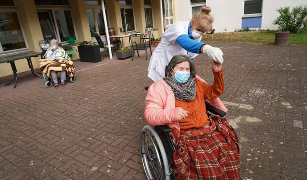 На фото пациентка с деменцией и служащая дома престарелых в Берлине