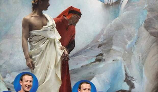 Причем эти блокировки практически невозможно обжаловать. Не секрет, поэтому, что эта социальная сеть теряет былую популярность, и блогеры уходят в другие, более лояльные.Авторы паблика «Надо ехать смотреть», посвященного сообщениям и коротким рецензиям на выставки произведений искусства, проходящие по всему миру, опубликовали в этой связи издевательские фотографии с изображением произведений мировой классики, в которых на месте запрещенных «Фейсбуком» элементов красуется портрет основателя и владельца этой сети Марка Цукерберга. Все эти картины будут представлены на открывшейся в Риме два дня назад выставке «Инферно», приуроченной к 700-летию со дня смерти Данте. Она продлится до до 9 января 2022 года в выставочном зале Scuderie del Quirinale и посвящена изображению ада в мировой живописи и скульптуре. Вот что они написали, объясняя смысл своей акции: